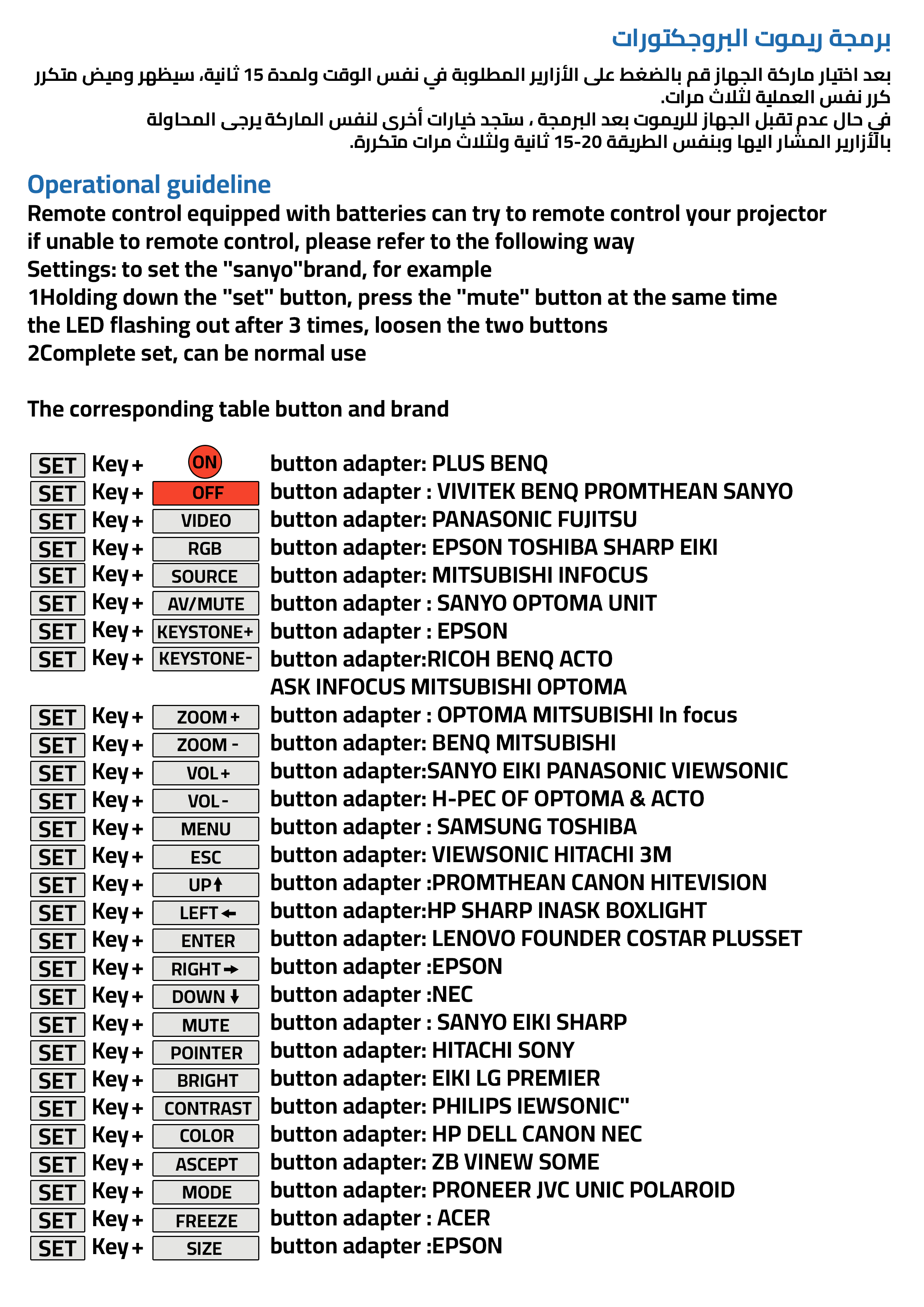 متوافق مع جميع أجهزة البروجيكتور وهذه امثلة للماركات مجرد مثال ولكن الريموت بيشتغل مع جميع الاجهزة